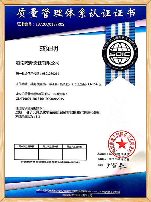 世邦塑膠-越南2020 ISO證書英文版